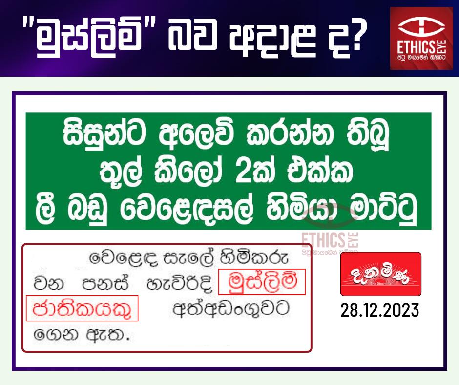 On December 28, 2023, Dinamina newspaper reported that the owner of a furniture store was arrested by police for possessing the drug "Thul," which was allegedly intended for sell among students in Horowpathana. The identity of the suspect in the content of the article was referred to as "Muslim national" (මුස්ලිම් ජාතිකයකු), although this detail was not relevant to the news. Media is advised not to mention an individual's ethnicity unless it is directly relevant to the news, as unnecessary references may contribute to negative attitudes and stereotyping.