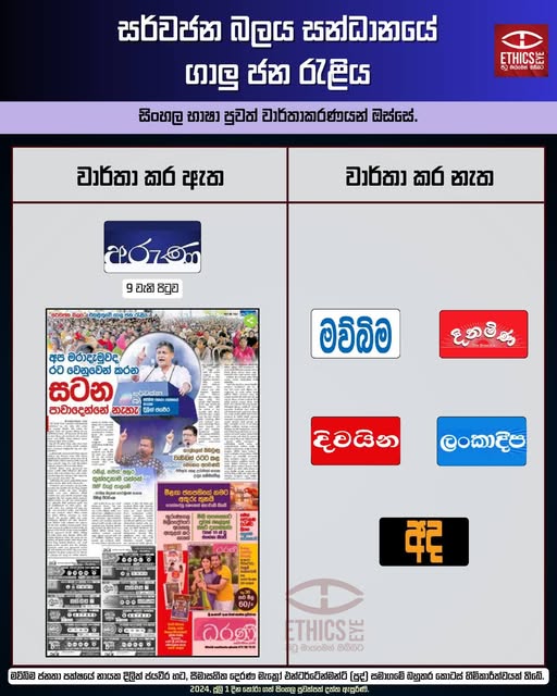 සර්වජන බලය සන්ධානයේ ගාලු ජන රැලිය සිංහල භාෂා පුවත් වාර්තා කළ ආකාරය