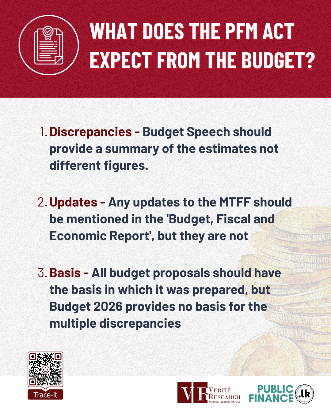 Sri Lanka’s Constitution grants Parliament full control over public finances, exercised primarily through the debate and approval of the annual budget. In practice, however, the public finance and budgeting system has long been affected by inconsistencies in the numbers presented. Figures in the budget speech, the estimates and other supporting documents released alongside the budget often do not align. The 2026 budget continues this trend, despite the Public Finance Management (PFM) Act mandating greater transparency. As a result, MPs are left debating outdated or inconsistent data, and the public is deprived of a clear understanding of the government's actual financial plans. Both outcomes weaken Parliament’s oversight role and reduce public accountability.