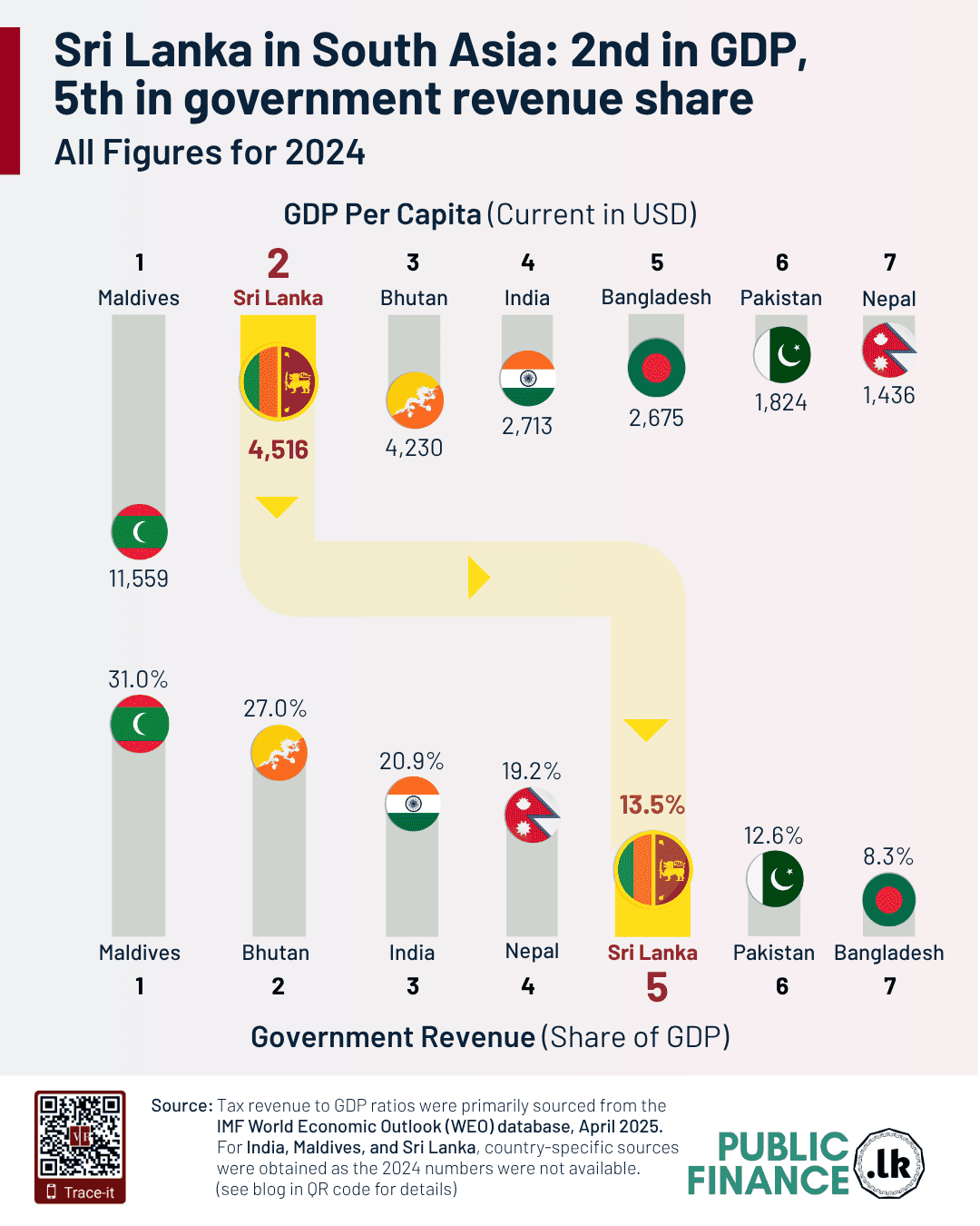 Sri Lanka in South Asia: 2nd in GDP, 5th in government revenue share