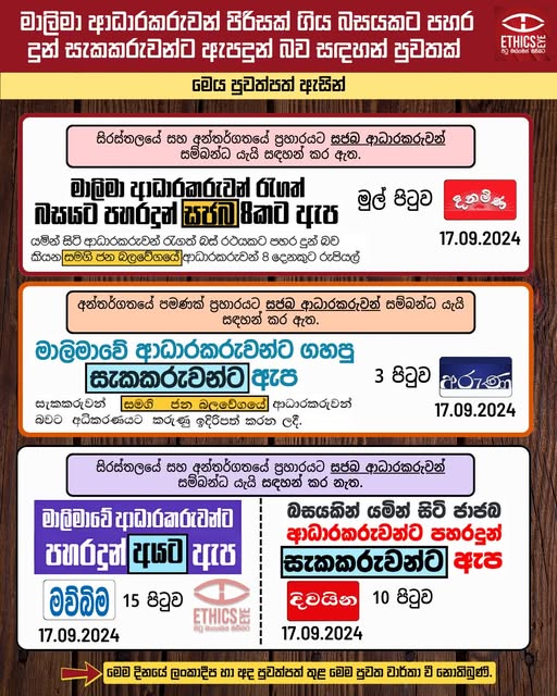 මාලිමා ආධාරකරුවන් ගිය බසයකට පහර දුන් සැකකරුවන්ට ඇප දුන් බව සඳහන් ප්රවෘත්තිය - පුවත්පත් ඇසින්