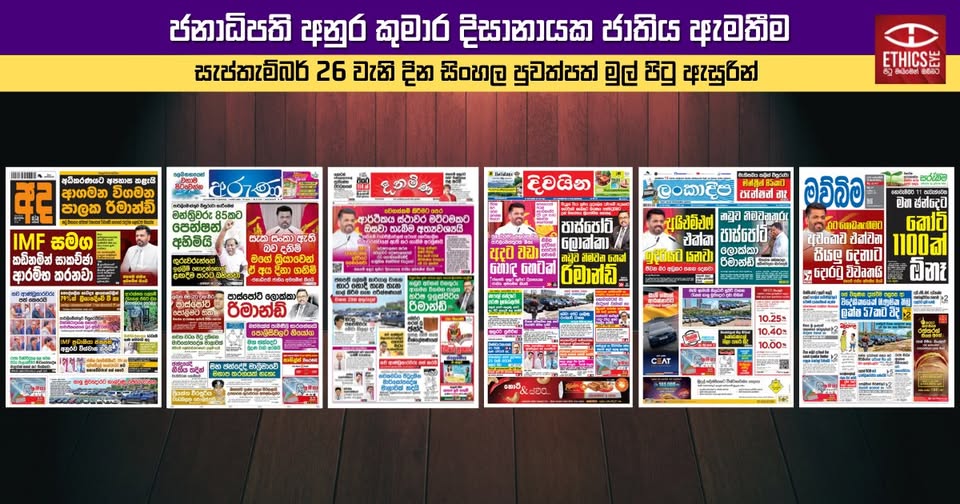 ජනාධිපති අනුර කුමාර දිසානායක ජාතිය ඇමතීම - 2024 සැප්තැම්බර් 26 වන දින සිංහල පුවත්පත් මුල් පිටු ඇසුරෙන්